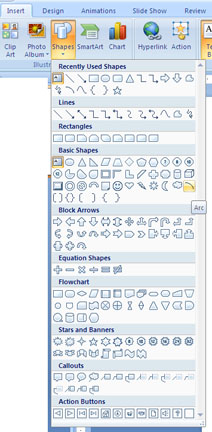OR Get shapes from the Shapes menu in the Insert tab. |
