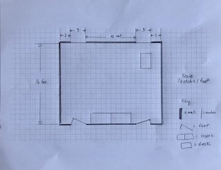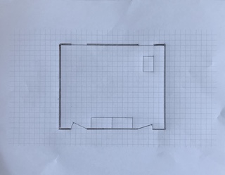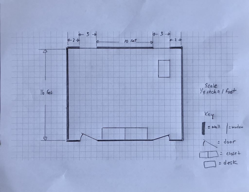Using graph paper, a pencil and a ruler, draw the walls of the room.